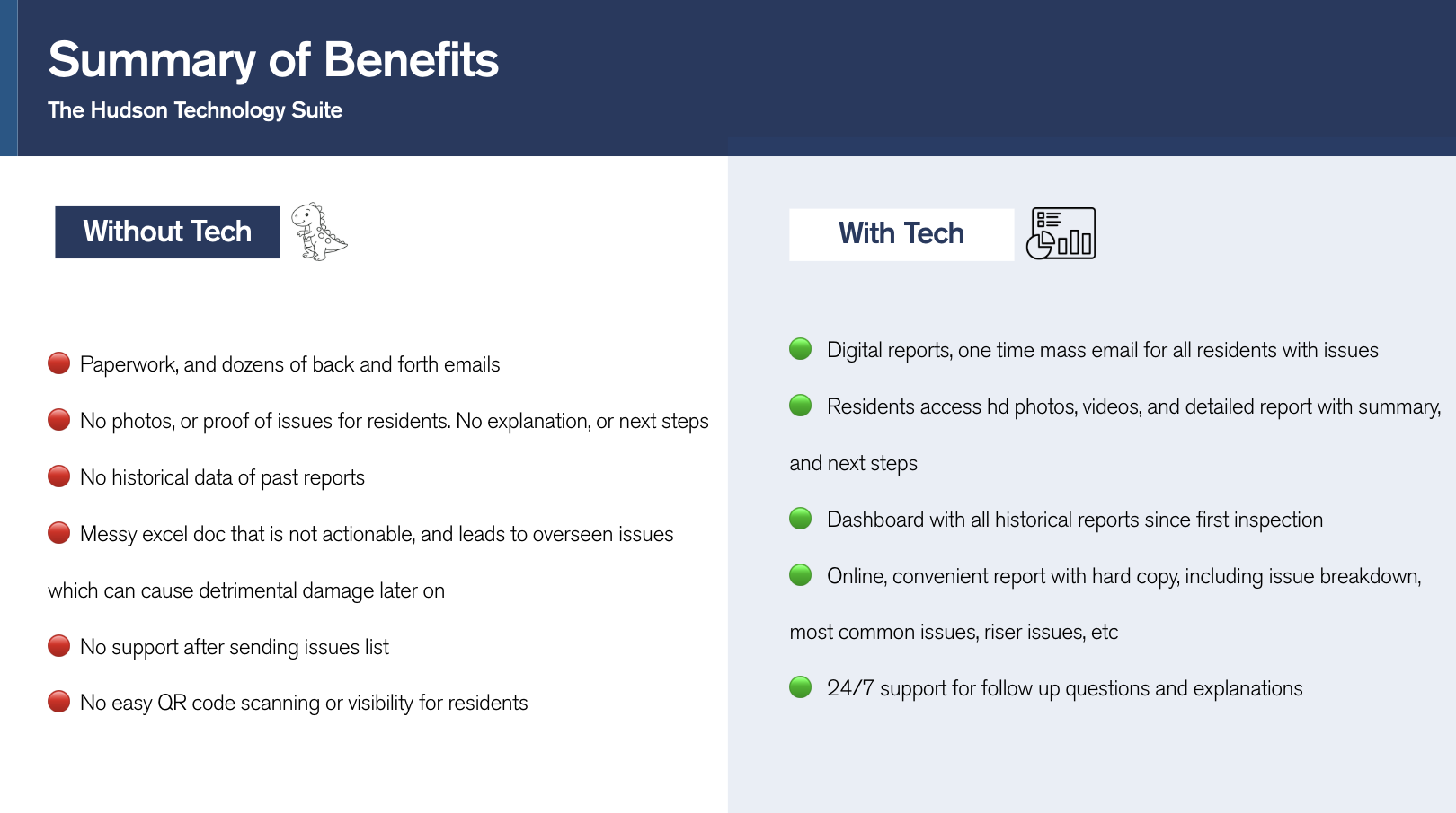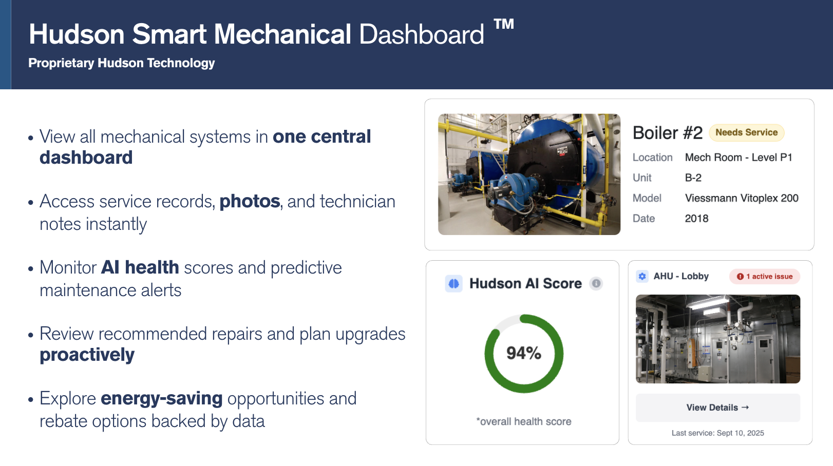 The Hudson Smart Mechanical Dashboard™ replaces that chaos with a single, visual source of truth—a Manager Portal that saves hours and a Resident Portal that people actually use.
