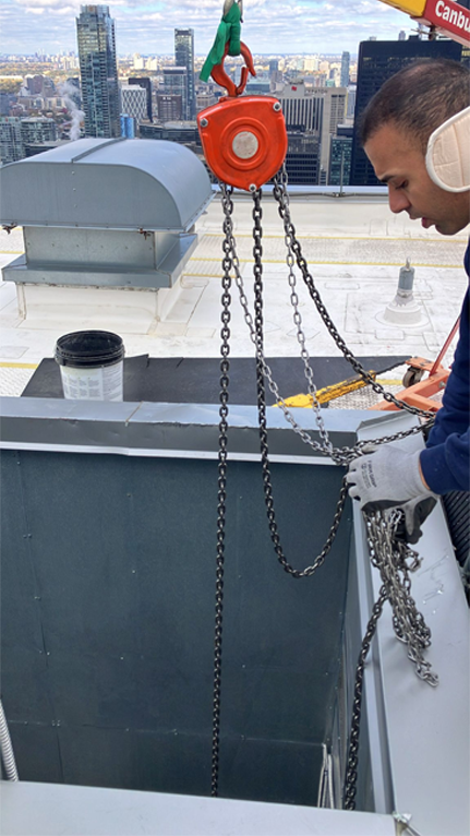 Hudson HVAC executed a precision rooftop AC coil replacement for a 50-story luxury condo near Scotiabank Arena, restoring critical machine room cooling and ensuring continuous elevator reliability.